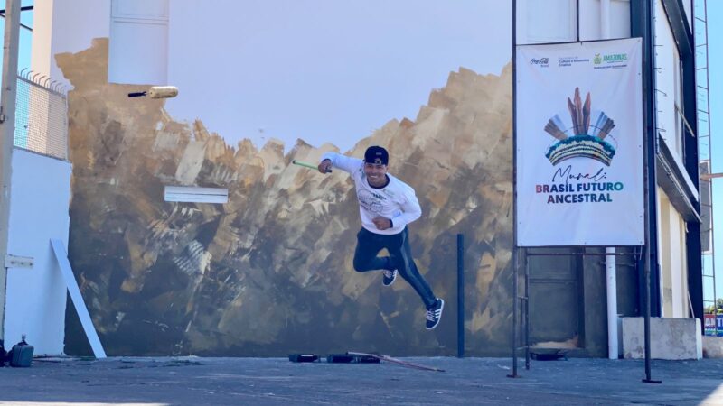Mural ‘Brasil futuro, ancestral’ traz a arte indígena aos muros do Bumbódromo de Parintins