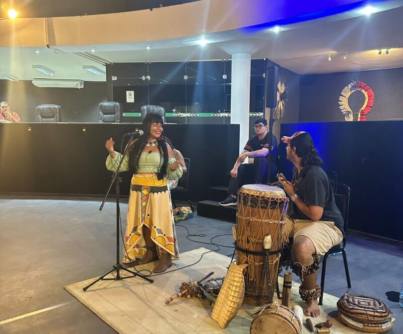 Cantora indígena Djuena Tikuna realiza atividades de integração com 80 músicos americanos do MIT, nesta quinta-feira (30)