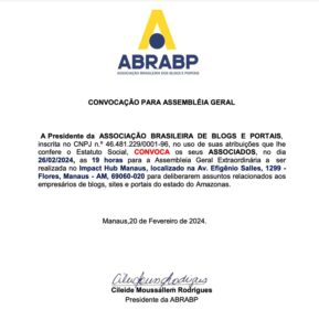 Na próxima segunda-feira, dia 26 de fevereiro, a Associação Brasileira de Blogs e Portais (ABRABP) realizará uma importante Assembleia Geral Extraordinária, convocando todos os seus associados para um encontro fundamental no calendário da entidade.
